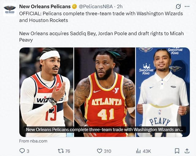 北京技巧7月7日,鹈鹕队官方火箭、奇才、鹈鹕的三方往还终了,鹈鹕队在这笔往还中获取了乔丹-普尔、萨迪克-贝与米卡-皮维(40号秀)的签约权。 文中写谈,鹈鹕送出了麦科勒姆、奥利尼克、一个国王将来的次轮签(这个次轮签送到了休斯顿)换来了普尔、贝、皮维的签约权(当今皮维还莫得跟鹈鹕签约)。 欧洲杯哪个线上直播革命皇冠体育靠谱吗