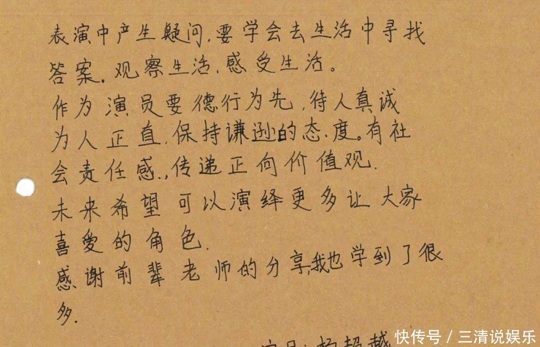 杨非凡写说念 :“饰演中产生的疑问,要学会去糊口中寻找谜底。不雅察糊口、感受糊口。”